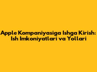 Salom do'stlar! Apple kompaniyasida ishlashni orzu qilyapsizmi? Qiziqarli, innovatsion va dunyoni o'zgartiradigan kompaniyada ishlash g'oyasi sizni hayajonga solayotganiga ishonaman. Keling, Apple ga ishga kirishning turli yo'llari va imkoniyatlarini birgalikda ko'rib chiqamiz. Ushbu maqolada siz Apple da ishga joylashish uchun nima qilish kerakligi, qanday malakalar talab qilinishi va ariza berish jarayoni haqida to'liq ma'lumotga ega bo'lasiz. Ishga qabul qilish bo'yicha maslahatlar va sizga yordam beradigan resurslar bilan tanishasiz.