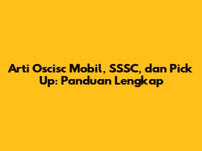 Arti Oscisc Mobil, SSSC, Dan Pick Up: Panduan Lengkap