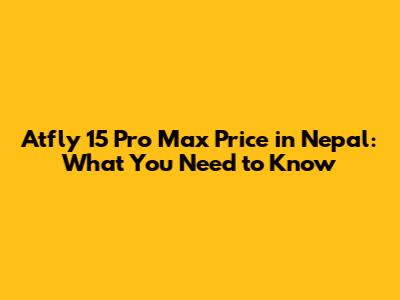 Atfly 15 Pro Max Price In Nepal: What You Need To Know