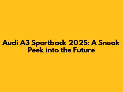 The 2025 Audi A3 Sportback is shaping up to be an exciting addition to the compact luxury car segment. With its refreshed design, advanced technology, and refined performance, it's poised to impress. Whether you're a long-time Audi enthusiast or new to the brand, this model has a lot to offer. We're eager to see the final product and experience all that the 2025 Audi A3 Sportback has to offer. The new features and upgrades will make it a standout choice in its class. Keep an eye out for more updates and announcements as we get closer to its release. The future is looking bright for the Audi A3 Sportback, and we can't wait to see it on the road.