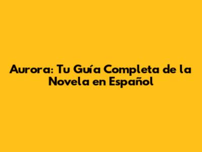 Aurora: Tu Guía Completa De La Novela En Español
