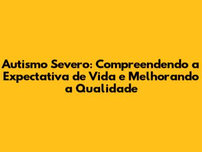 Autismo Severo: Expectativa De Vida E Qualidade