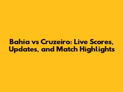 Bahia Vs Cruzeiro: Live Scores, Updates, And Match Highlights