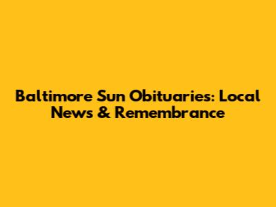 Baltimore Sun obituaries serve as an invaluable resource for preserving memories, honoring lives, and connecting communities. Whether you are seeking to research your family history, pay tribute to a loved one, or simply reflect on the lives of those who have shaped Baltimore, the obituaries offer a wealth of information and emotional resonance. By understanding the significance of obituaries, knowing how to find them, and learning how to write a meaningful tribute, you can fully appreciate the role they play in our society. So next time you're looking to connect with the heart of Baltimore, dive into the Baltimore Sun obituaries and discover the rich tapestry of lives lived and legacies left behind.