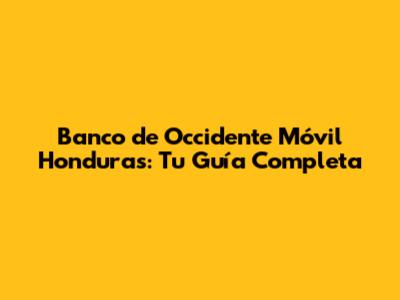 Banco De Occidente Móvil Honduras: Guía Completa