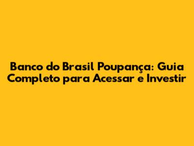 Banco Do Brasil Poupança: Guia Completo Para Acessar E Investir