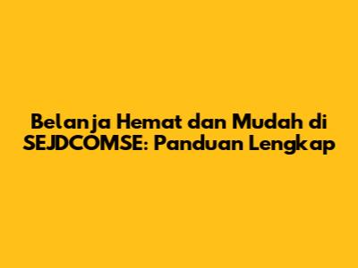 Belanja Hemat Dan Mudah Di SEJDCOMSE: Panduan Lengkap