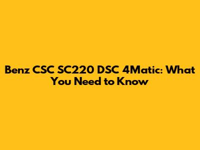 Benz CSC SC220 DSC 4Matic: What You Need To Know