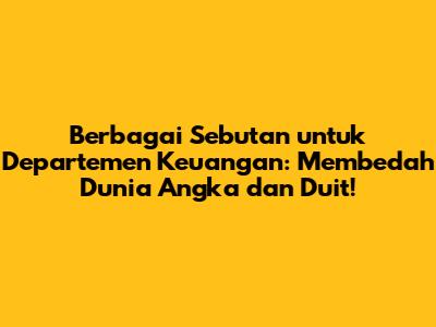 Berbagai Sebutan Untuk Departemen Keuangan