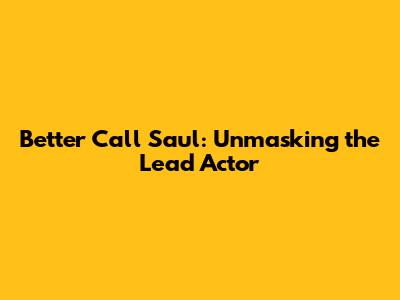 Better Call Saul: Unmasking The Lead Actor