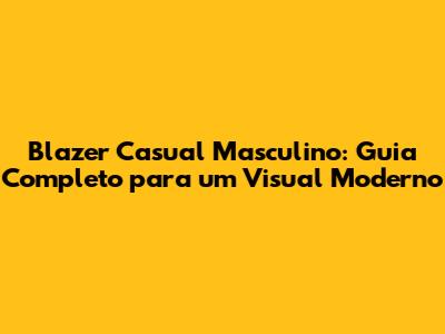Blazer Casual Masculino: Guia Completo Para Um Visual Moderno
