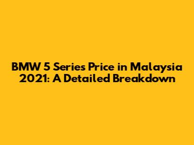 Hey guys! Are you curious about the BMW 5 Series price in Malaysia for 2021? You've come to the right place! Let's dive into everything you need to know about the cost, models, and what makes this luxury sedan a fantastic choice. The BMW 5 Series has always been a symbol of sophistication and performance, blending luxury with cutting-edge technology. Understanding the pricing structure is crucial for anyone considering making this investment. So, buckle up, and let's explore the details!