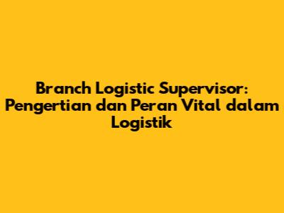 Branch Logistic Supervisor: Tugas & Tanggung Jawab Lengkap