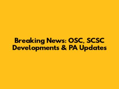Breaking News: OSC, SCSC Developments & PA Updates