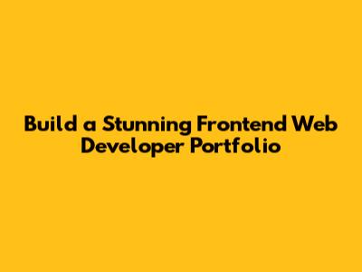 Build A Stunning Frontend Web Developer Portfolio