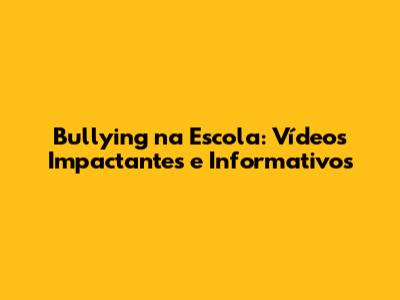 Bullying Na Escola: Vídeos Impactantes E Informativos