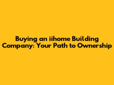Buy An Iihome Building Company: Your Guide