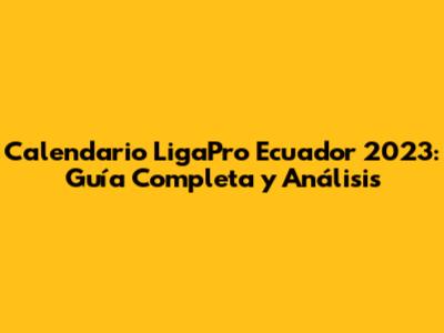 Calendario LigaPro Ecuador 2023: Guía Completa Y Análisis
