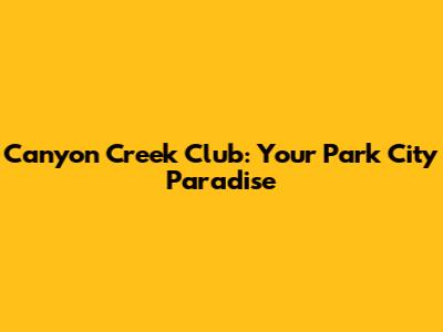 Canyon Creek Club: Your Park City Paradise