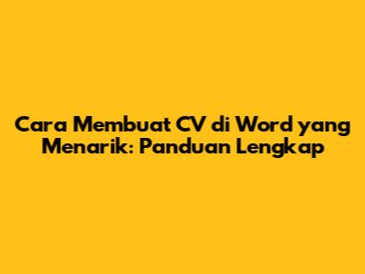 Cara Membuat CV Di Word Yang Menarik: Panduan Lengkap