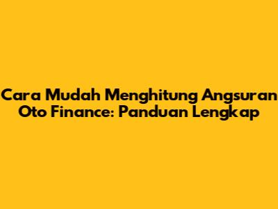# Cara Mudah Menghitung Angsuran Oto Finance: Panduan Lengkap
