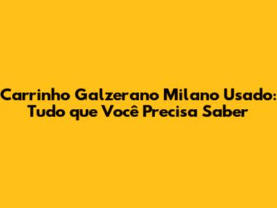 Por Que Escolher um Carrinho Galzerano Milano Usado?