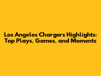 Chargers Highlights: Top Plays, Games, And Moments