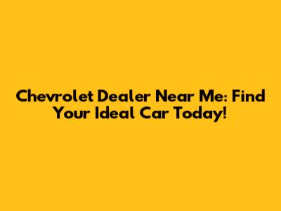 Chevrolet Dealer Near Me: Find Your Ideal Car Today!
