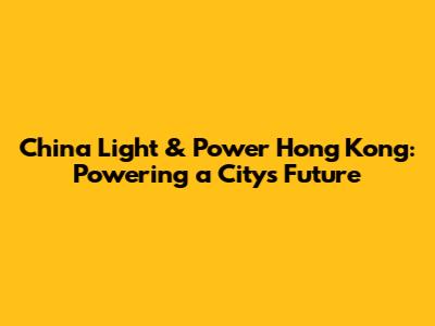 China Light & Power Hong Kong: Powering A City's Future