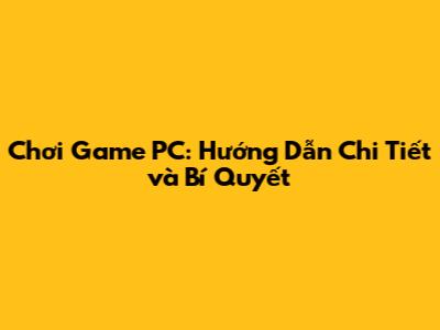 Chơi Game PC: Hướng Dẫn Chi Tiết Và Bí Quyết