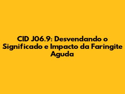 CID J06.9: Se você já se pegou pesquisando sobre saúde, é bem provável que tenha se deparado com códigos como esse. Mas qual o CID J06.9 e o que significa? Basicamente, o CID (Classificação Internacional de Doenças) é um sistema de códigos criado pela Organização Mundial da Saúde (OMS) para classificar doenças e outros problemas relacionados à saúde. O código J06.9 especificamente se refere à faringite aguda, que é uma inflamação da faringe, popularmente conhecida como garganta. E aí, vamos juntos entender tudo sobre ela?