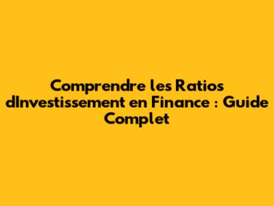 Comprendre Les Ratios D'Investissement En Finance : Guide Complet