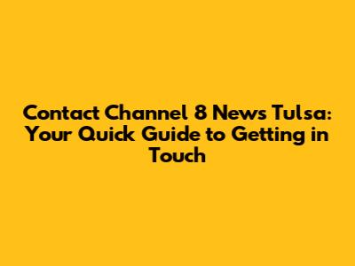 Contact Channel 8 News Tulsa: Get The Number & More!