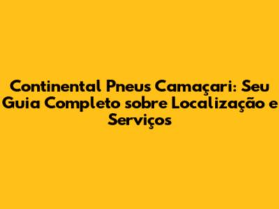 Continental Pneus Camaçari: Tudo Sobre Endereço E Serviços
