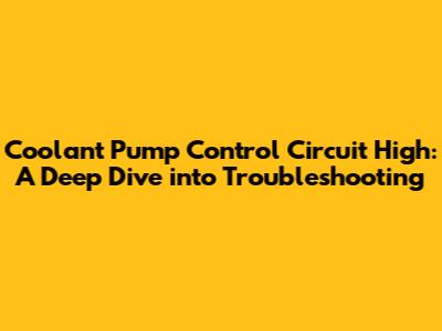 Coolant Pump Control Circuit High: Causes & Solutions