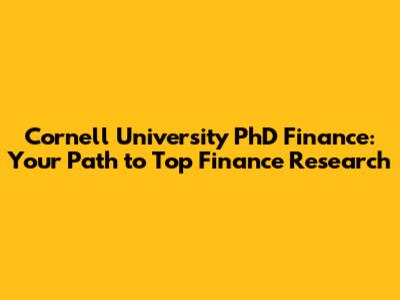 Cornell PhD Finance: Your Path To Top Finance Research