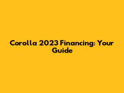Corolla 2023 Financing: Your Guide