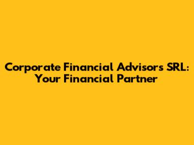Corporate Financial Advisors SRL: Your Financial Partner