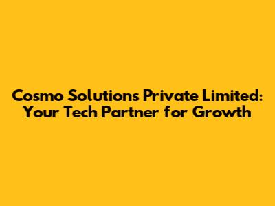 Are you looking for Cosmo Solutions Private Limited? In today's fast-paced digital world, having the right technology partner can make all the difference. Cosmo Solutions steps in to fill that role, offering a comprehensive suite of services designed to propel your business forward. But what exactly does Cosmo Solutions do, and why should you consider them? Let's dive into the world of Cosmo Solutions Private Limited and explore how they can become an invaluable asset to your organization.