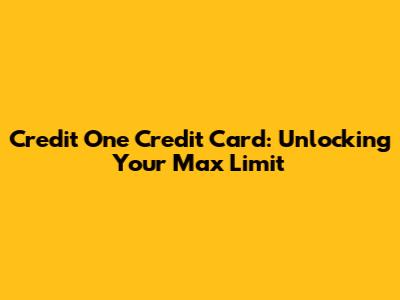 Credit One Credit Card: Unlocking Your Max Limit