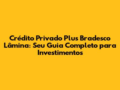 Crédito Privado Plus Bradesco Lâmina: Guia Completo