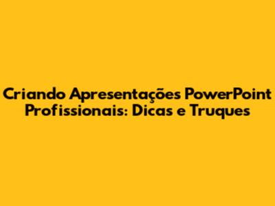 Criando Apresentações PowerPoint Profissionais: Dicas E Truques