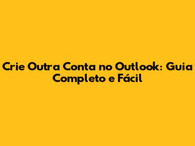 Crie Outra Conta No Outlook: Guia Completo E Fácil
