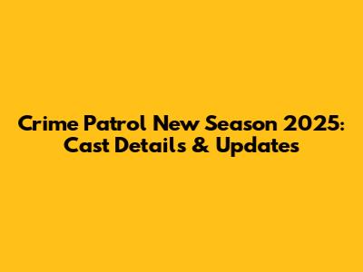 Crime Patrol New Season 2025: Cast Details & Updates