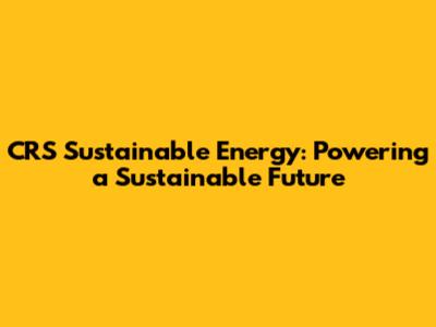 CRS Sustainable Energy: Building A Greener Future