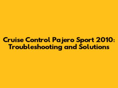 Cruise Control Fix: Pajero Sport 2010 Troubleshooting