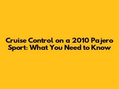Cruise Control On A 2010 Pajero Sport: What You Need To Know