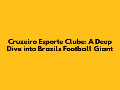 Cruzeiro Esporte Clube: A Deep Dive Into Brazil's Football Giant