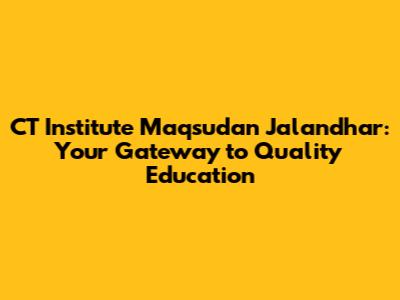 Hey guys! Are you on the hunt for a top-notch educational institution in Jalandhar? Look no further! CT Institute Maqsudan is a name that resonates with quality, innovation, and holistic development. Let's dive into what makes this institute a premier choice for students aspiring to excel in their careers.
