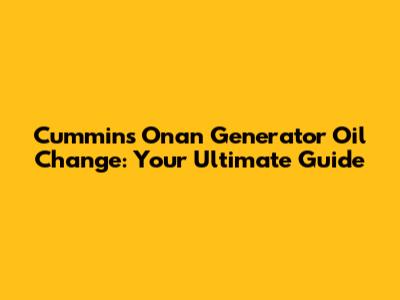 Cummins Onan Generator Oil Change: A Step-by-Step Guide